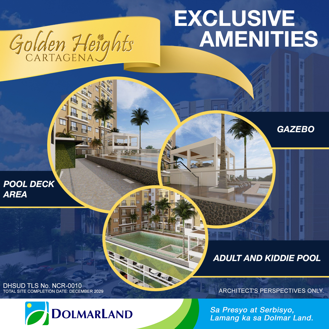 Apart from its ideal location, Golden Heights Cartagena offers a range of exclusive amenities tailored to match the lifestyle of the urban resident. These include a pool deck, an adult and kiddie pool, a gazebo, a lobby area, and a fitness gym.